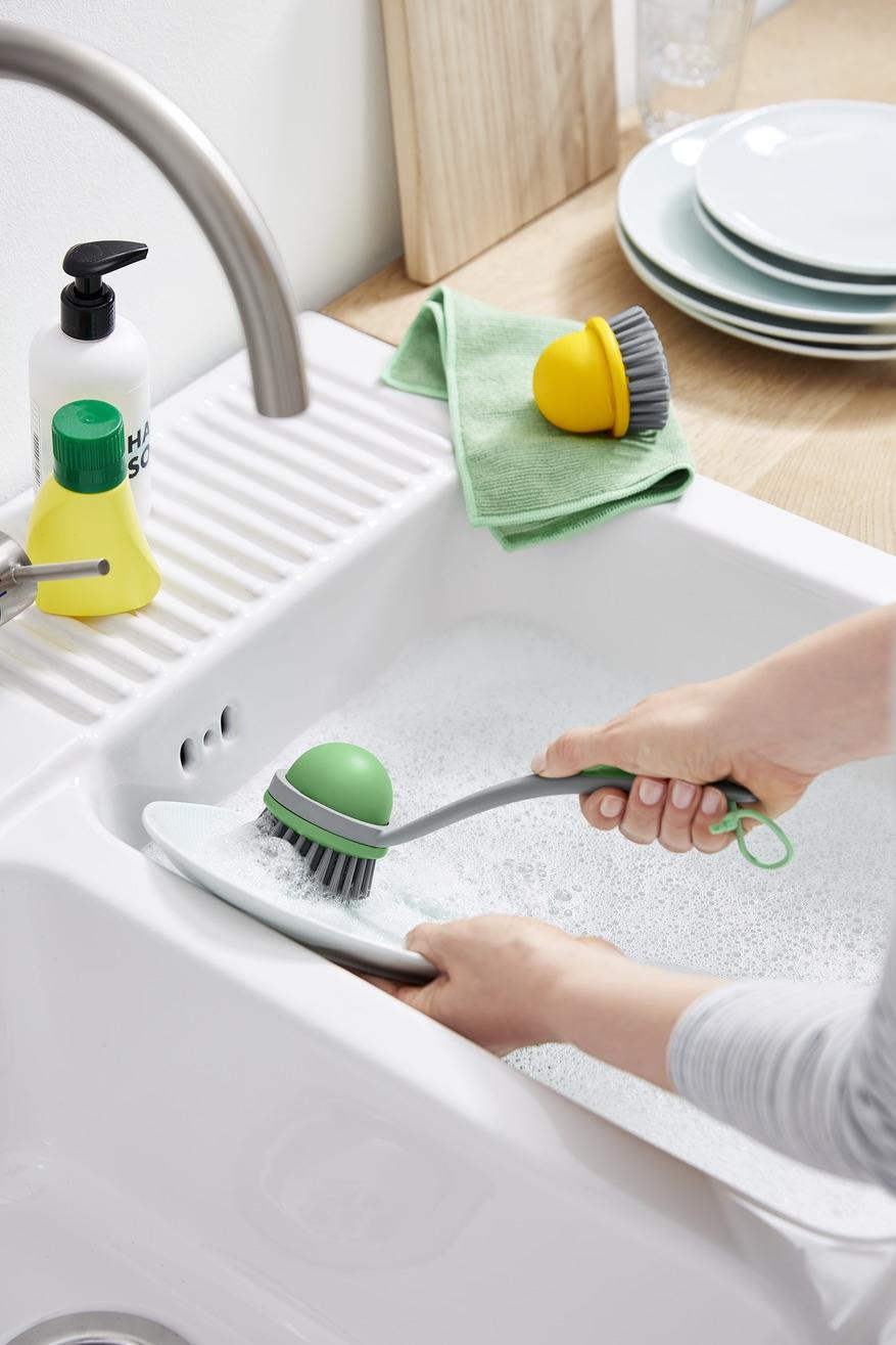 ● Щетка для мытья посуды со сменными наконечником – благодаря универсальной щетке, оснащенном прочные щетинки, мойка окажется быстрым и приятным – с помощью нескольких движений можно удалить сильные загрязнения. Щетка без держателя отлично подходит для чистки кастрюль и сковородок, в то время как модель с ручкой (в том числе длиной 22 см) пригодится, в частности, для очистки высоких сосудов, таких как чашки, вазы, кувшины.