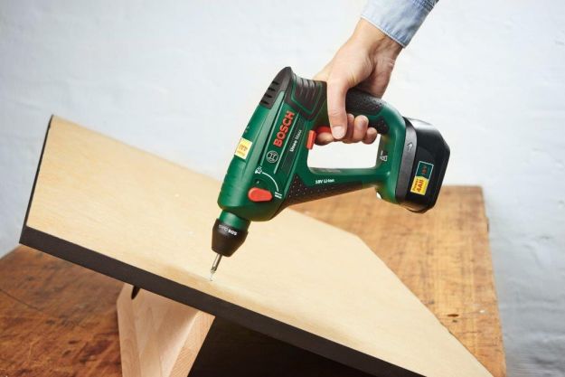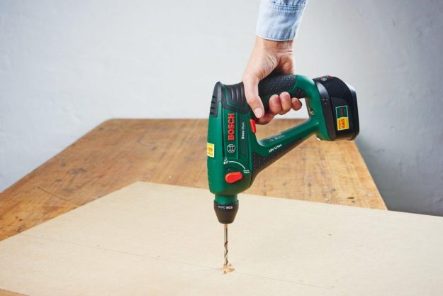 В плите МДФ и в фанере просверлите отверстия на двух деревянных колышков. В этом Вам поможет беспроводной молоток udarowo-поворотный. Во время работы включить блокировку удара. Совет: используйте сверло, диаметр которого составляет около 1-2 мм меньше дюбеля. Будьте осторожны, чтобы не просверлить отверстие насквозь доску и чтобы штифт был установлен неправильно. Установите сверло на половину длины штифта – в этом случае 4 – 4,5 мм, и не шевелись дальше, чем до этого момента.